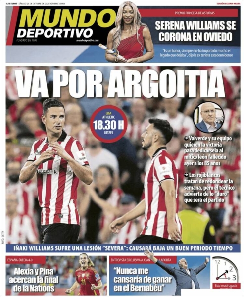 Un día más, os traemos las portadas de los principales periódicos deportivos de España, en su edición de hoy, 25-10-2025