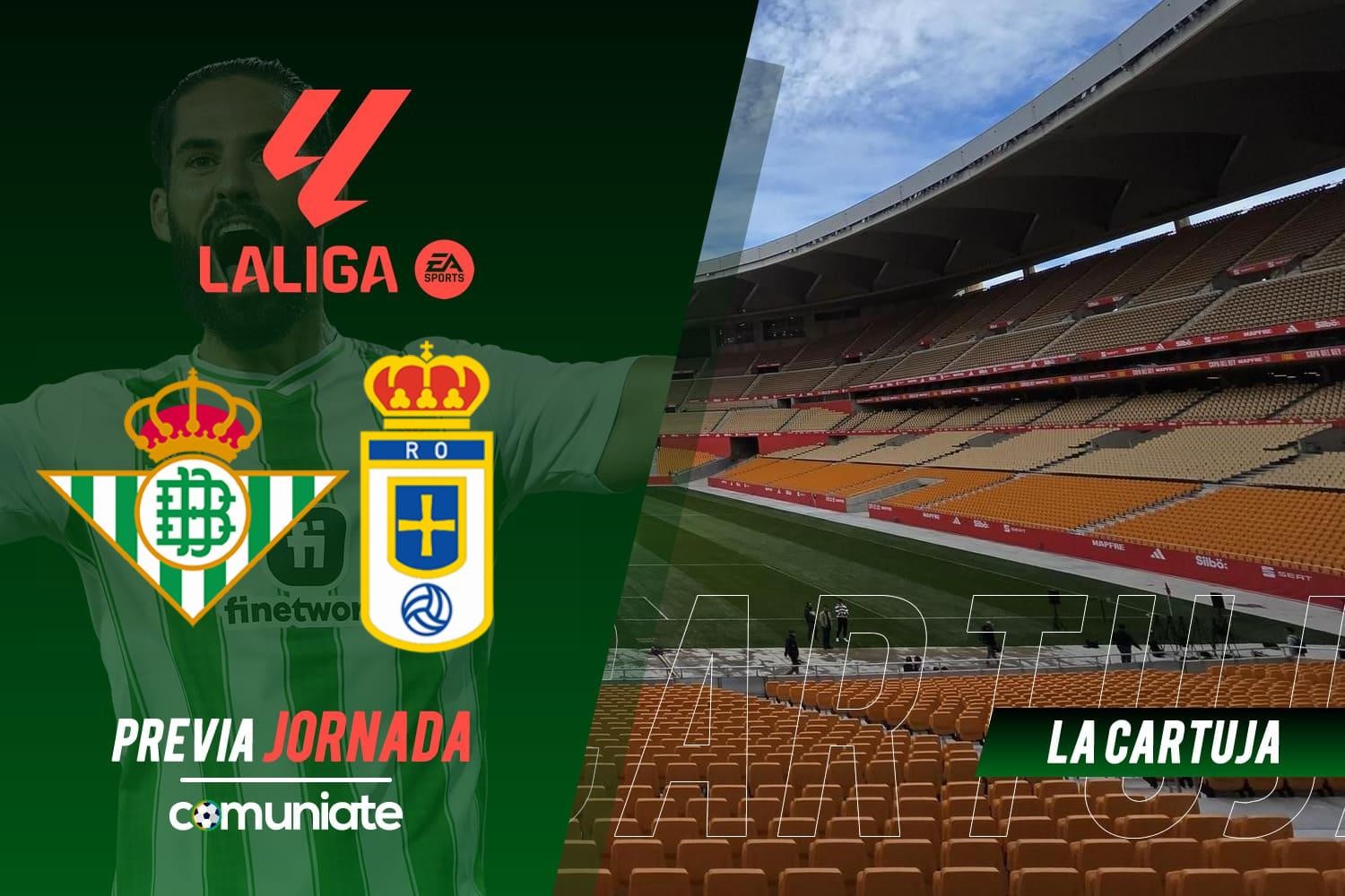El Real Betis buscará asegurarse la quinta plaza que ya tiene prácticamente encarrilada frente al colista, el Oviedo. Pellegrini ha perdido un nuevo efectivo para lo que resta de temporada, Ángel Ortiz, que se une a la baja de Marc Bartra.